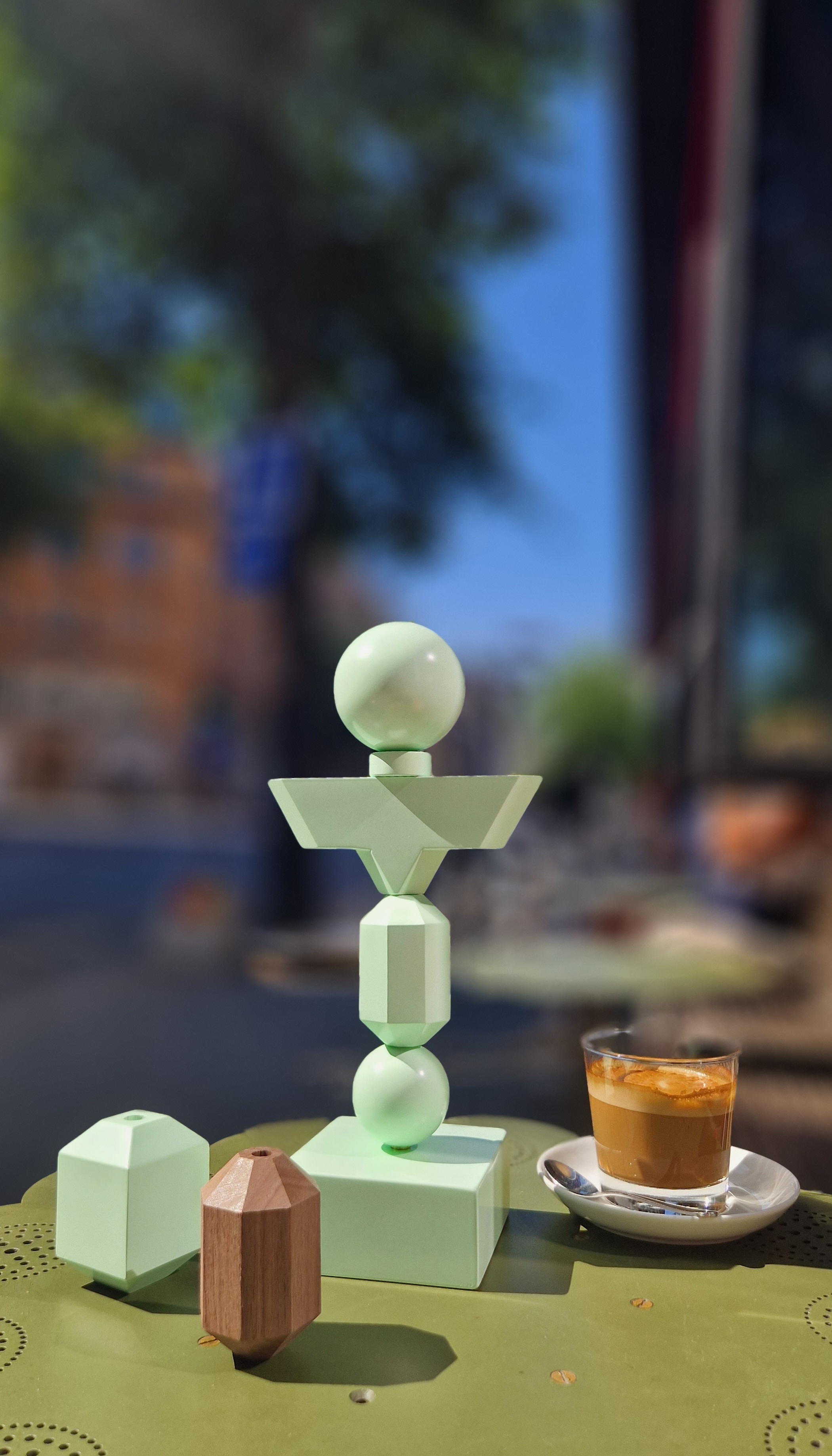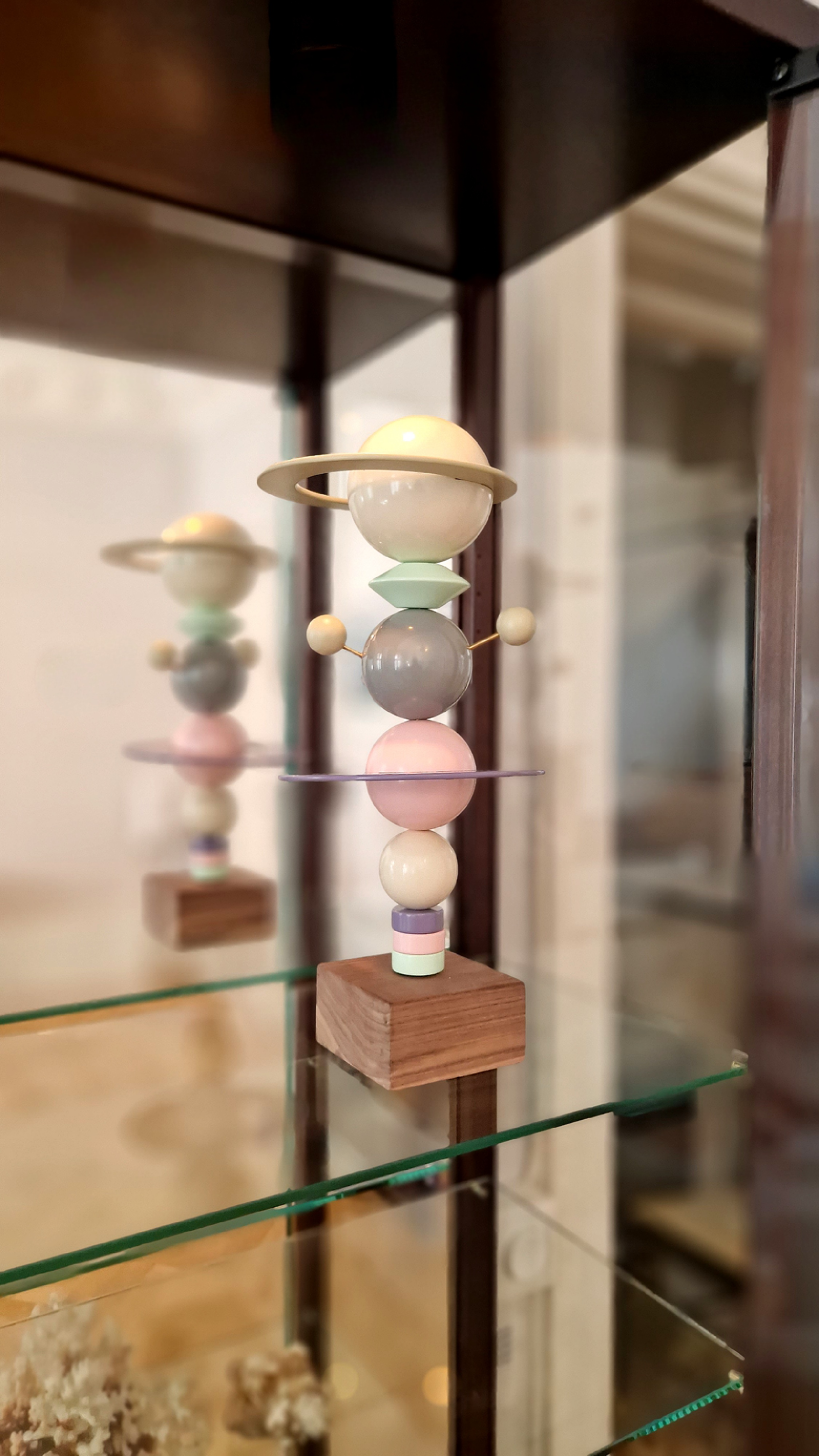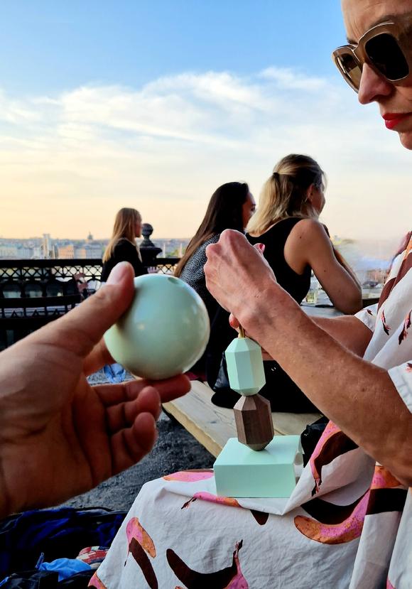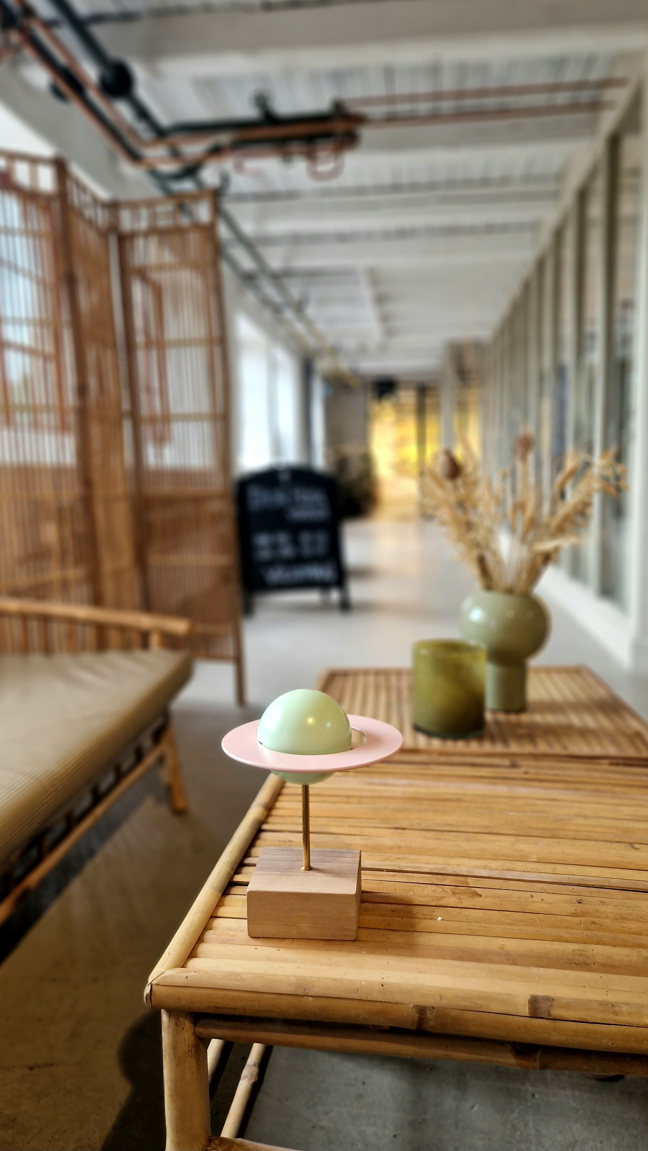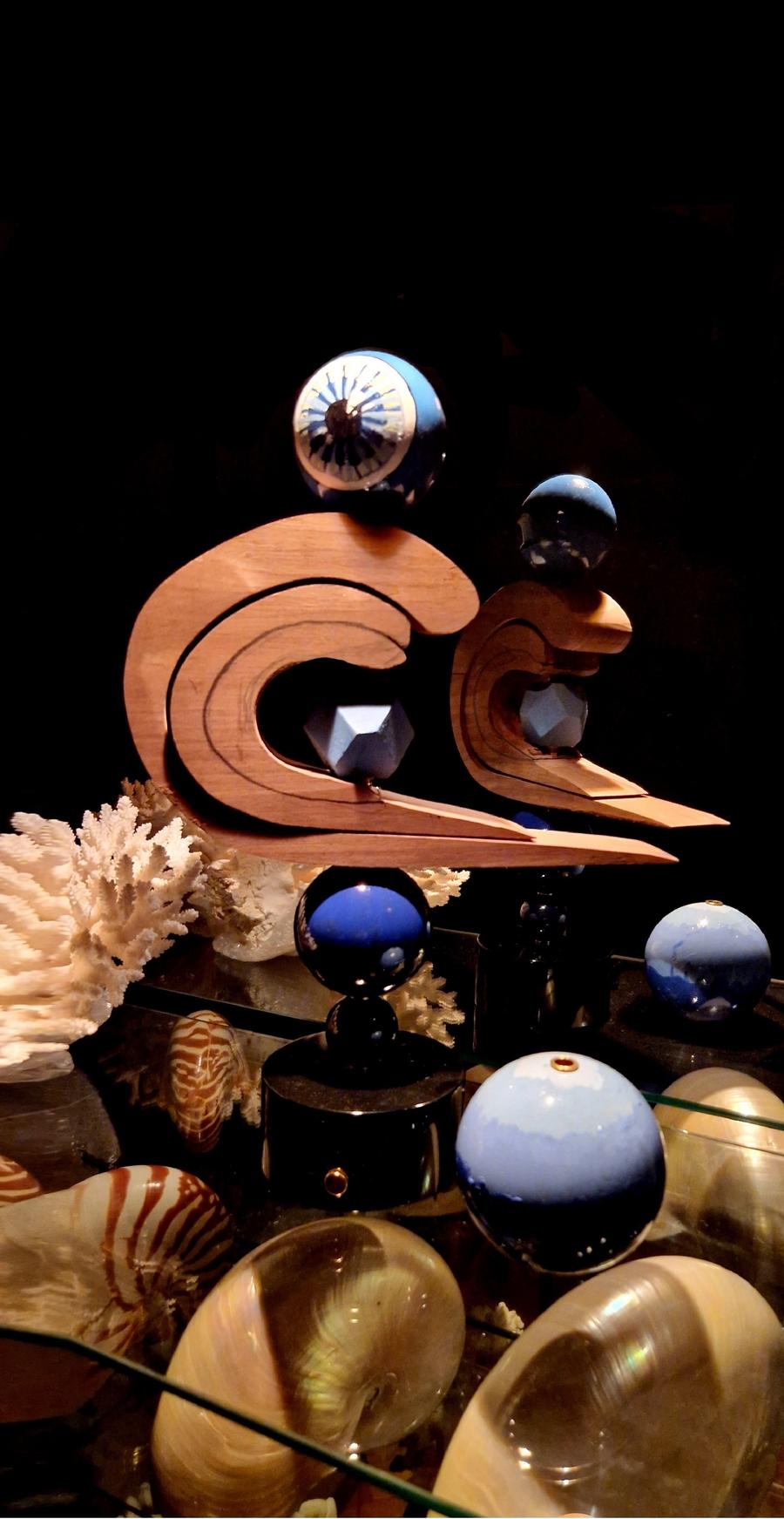 painted sphere can be mixed with exclusive raw wood, ceramics and glass.